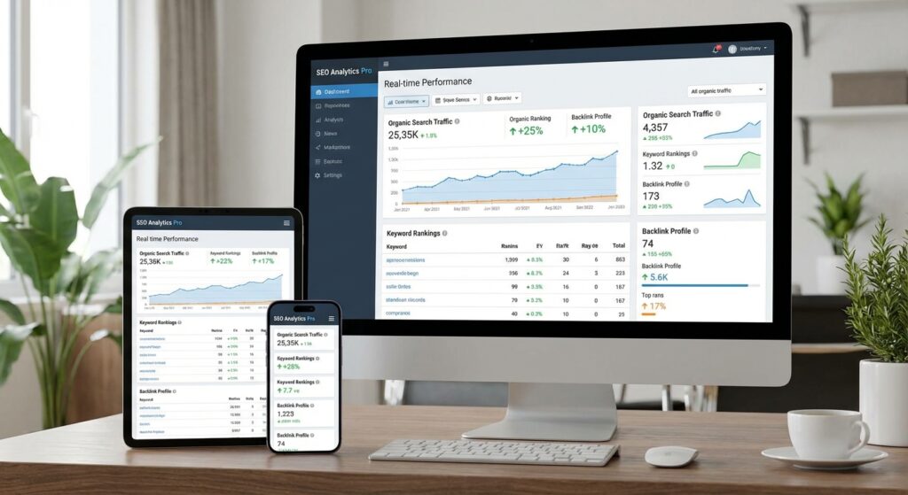 Chaque mois, vous recevez un rapport détaillé avec l’évolution de vos positions, le trafic organique et les actions réalisées. Appelez-nous au 07 63 44 46 07 pour en discuter.